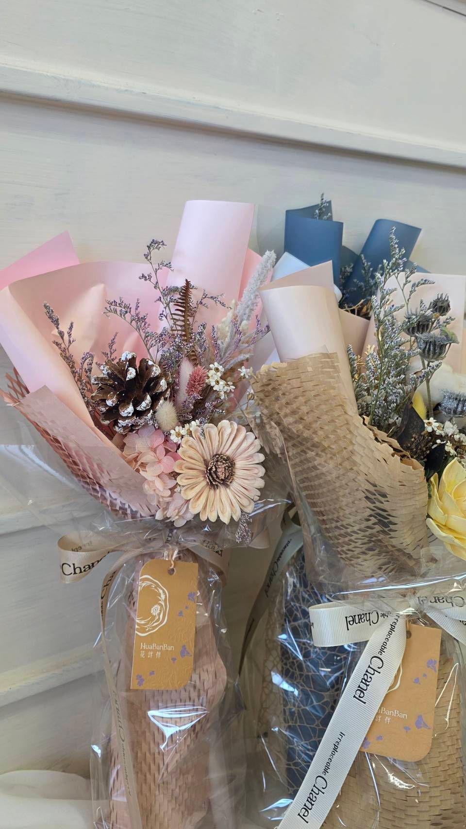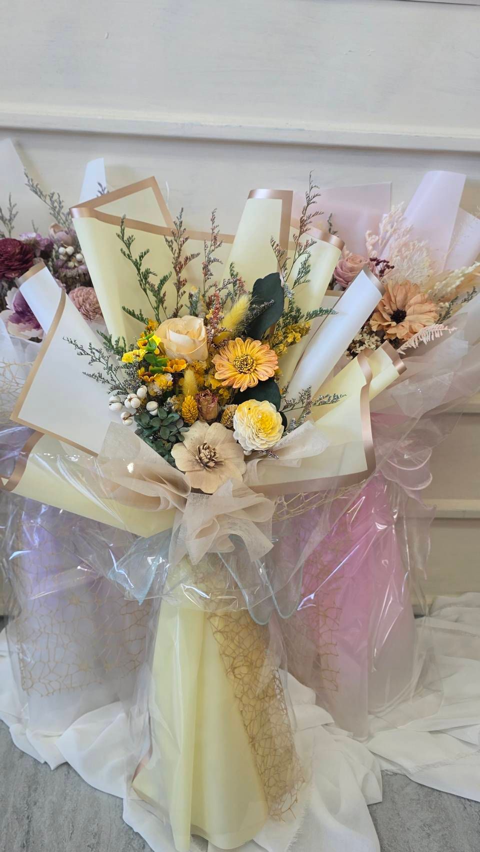 奶茶色蓬蓬裙乾燥中花束