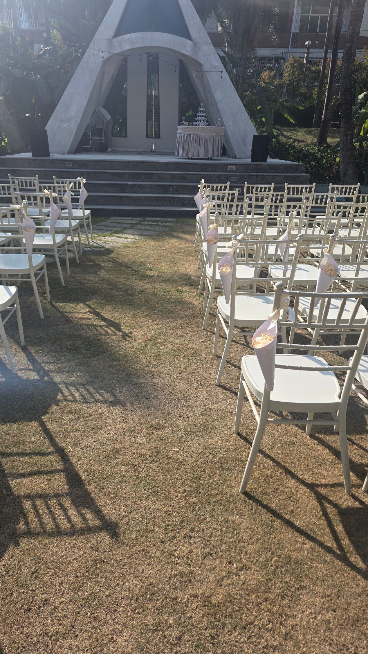 - 儀式感延伸: 甜筒整齊掛在椅背上,能增加觀禮區的層次感,讓現場空景拍攝更具文青質感。