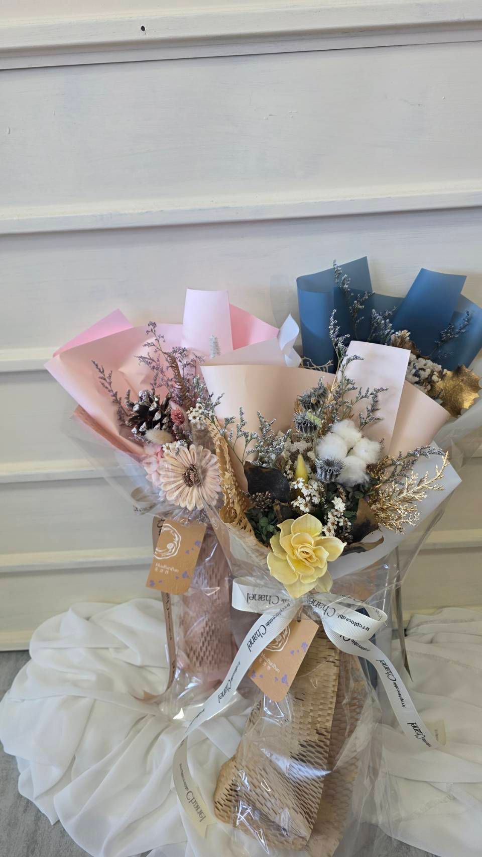 4.作品皆含提袋,若需要加購花盒,請告知花藝師。