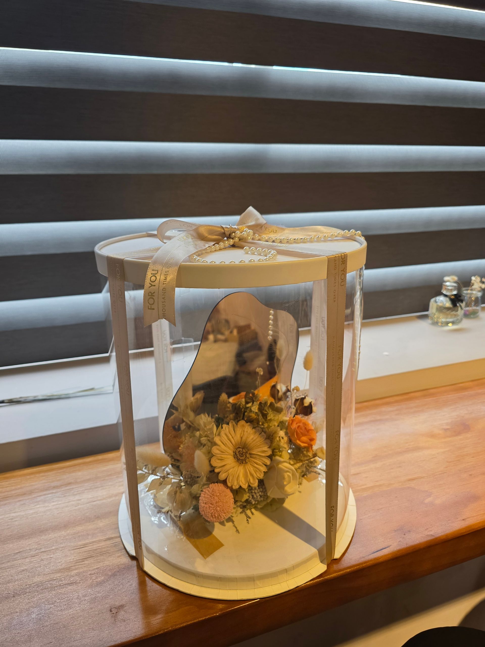 鏡子照映出的是當下的模樣,而花朵則象徵著永恆的美好。 這款花禮想傳達的是:「無論世界如何變換,別忘了看見鏡中那個熠熠生輝的自己。」 柔和的大地色系不搶奪焦點,卻能在每次抬頭對鏡整理時, 給予一份無聲卻堅定的陪伴。