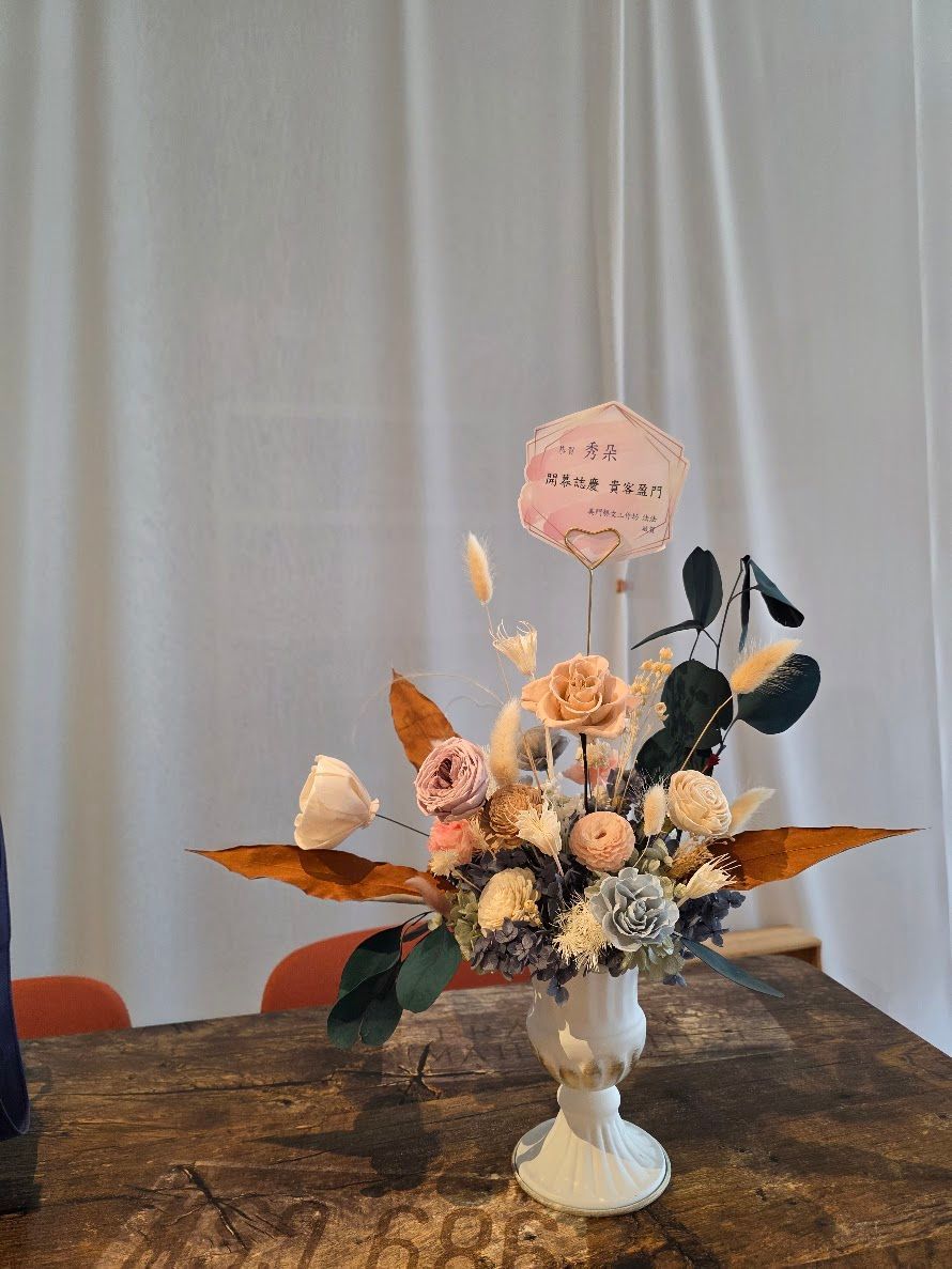 每個成功背後,都有無數個努力的瞬間;而每一份榮耀,都值得被優雅地紀念。 花絆伴【絆 ‧ 桂冠】系列,是我們為了致敬「成就」而誕生的作品。它突破了傳統桌花的框架,以「杯」為器,象徵著承載豐盛、裝滿祝福。
