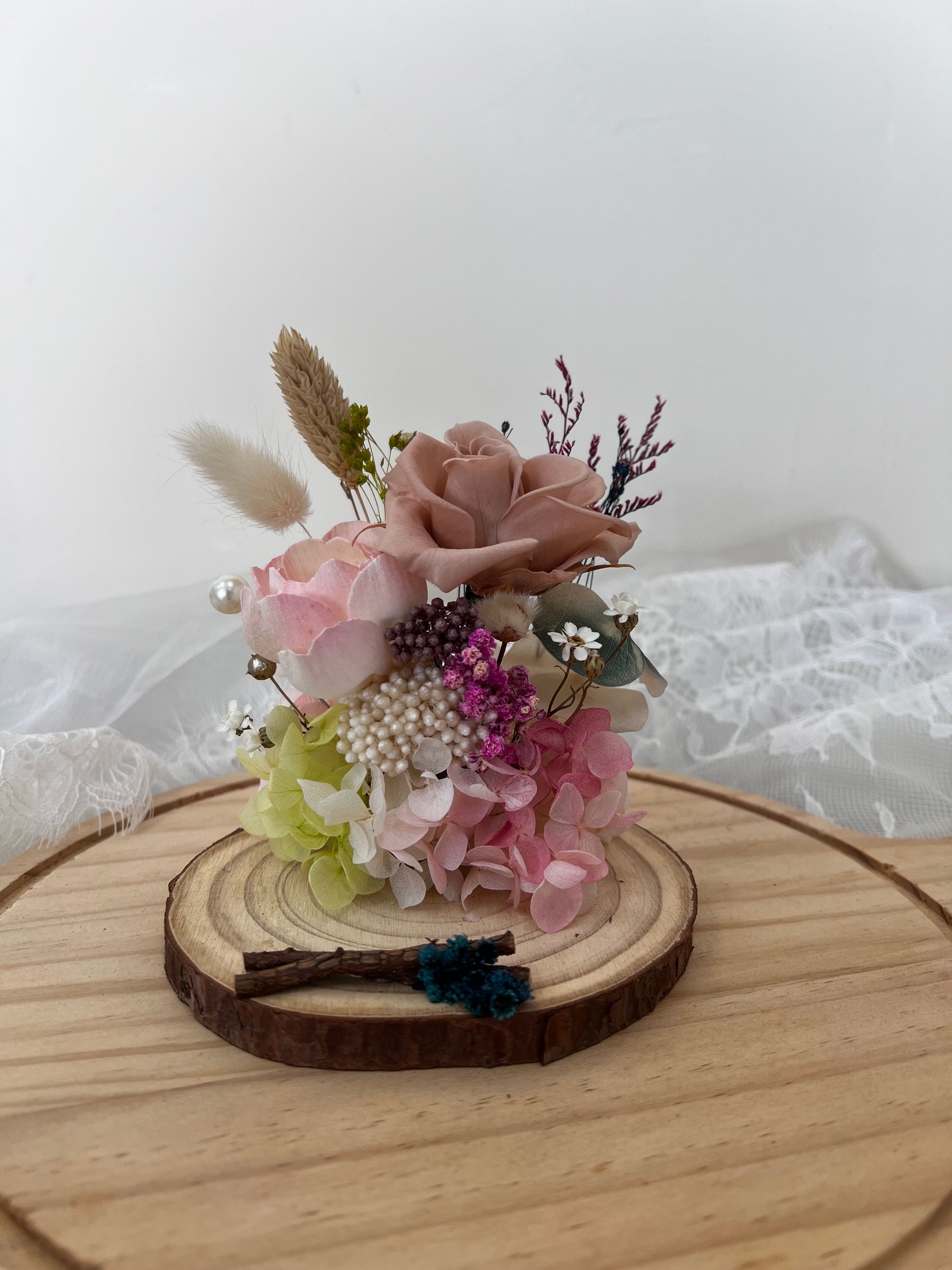永生玫瑰 永生繡球 法國小白梅 天然松果 永生卡斯比亞